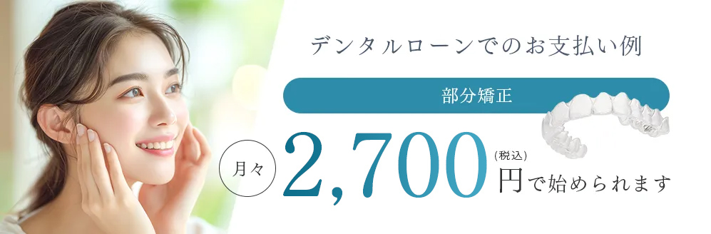 当院では無理なく治療を始めていただけるよう、デンタルローンによる分割払いに対応しています。24回までは無金利、25~84回までは年利3.5%の特別金利でご利用いただけます。月々のご負担を抑えながら、ご希望の矯正治療が可能です。初診カウンセリング時にもご案内いたしますので、支払い方法にお悩みの方もぜひお気軽にご相談ください。